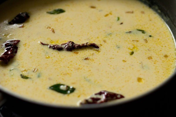 • Add besan and yogurt mixture to it. Stir continuously and bring it to a boil.