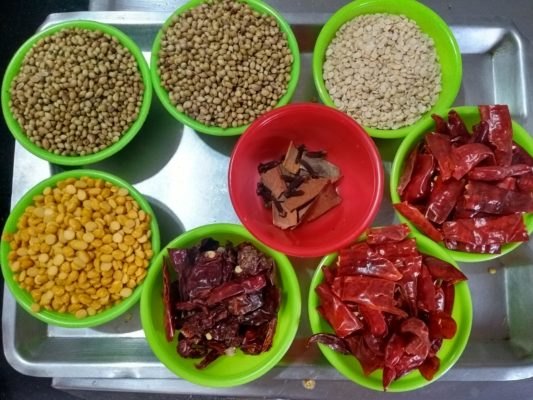Ingredients required for Bisi Bele Bath Powder / Vangi Bath Powder