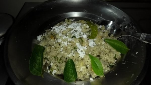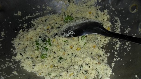 Now add grated coconut and coriander leaves. Yummy, spicy ‘Kalu Uppittu‘ is ready to serve. This is the easiest and best Upma recipe made using rice soji. Other cereals like Avarekalu or Peas can be used in place of Rajma. Plain Rice Suji Upma can also be prepared which also tastes awesome. You can use red chilies and little more ginger for this and ignore black pepper.