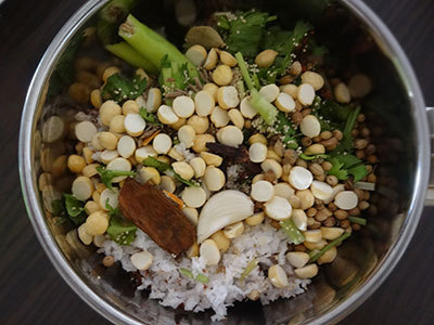To get a different taste, you can add 1 spoon of coriander. Some people like to add garlic to this which can be added while grinding masala.