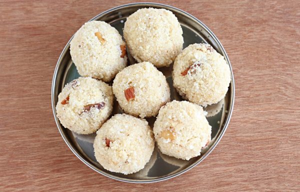 This sweet laddoo is made from Chiroti Soji. It is the best choice for carrying during travel and for storing. It can be made rich using lots of dry fruits. The dry coconut and ghee used to give it a beautiful aroma and taste. The taste can be varied if the basin is mixed with Soji.