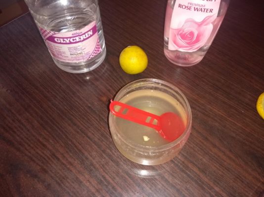 Rosewater makes the skin soft, Glycerine holds the moisture for a long time and the Lemon removes dark spots and imparts glow and fairness of skin.