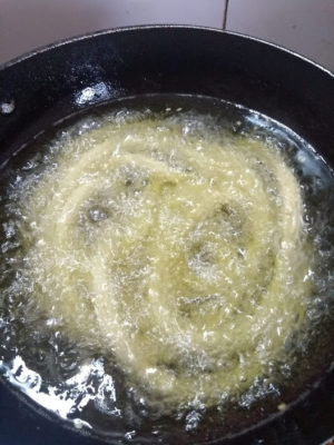 Chakkuli batter is ready. Now deep fry this in medium flame till it turns golden brown. Crispy, spicy chakkuli is ready to relish with strong filter coffee.