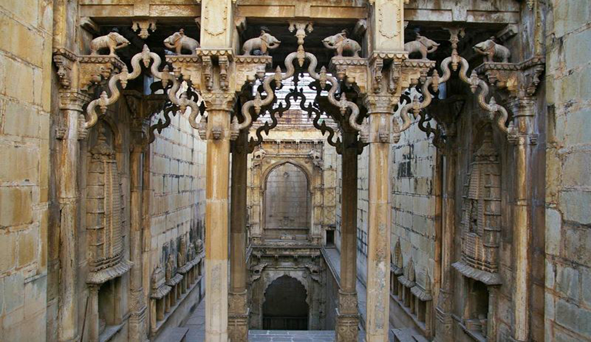 Hundreds of years ago, magnificent stepwells were built in the parched zones of the country to collect rain water during monsoon and keep it accessible all year round. These stepwells are known by different names like ‘baori’, ‘baoli’, ‘bawdi’ or ‘vav’. Constructed in multi-storeys with symmetrically aligned steps leading to the water level, these stepwells have elaborately ornamented columns, platforms, niches, sculptures and intricate carvings, which reflect their exceptional engineering and architectural excellence. Due to the cooler ambience inside, they served as delightful retreats during peak summer season and also as places for social gatherings and sacred rituals. Most stepwells are found in the states of Gujarat and Rajasthan, because of sparse rain and intense water scarcity. It is estimated that there were more than 3000 stepwells in India, mostly built between the 5th and 18th centuries, but many of them declined to a forgotten world in the subsequent years of British rule by the installation of pumps and piping system. Among the hundreds of surviving stepwells, we are presenting a list of 7 exotic stepwells you cannot afford to miss.
