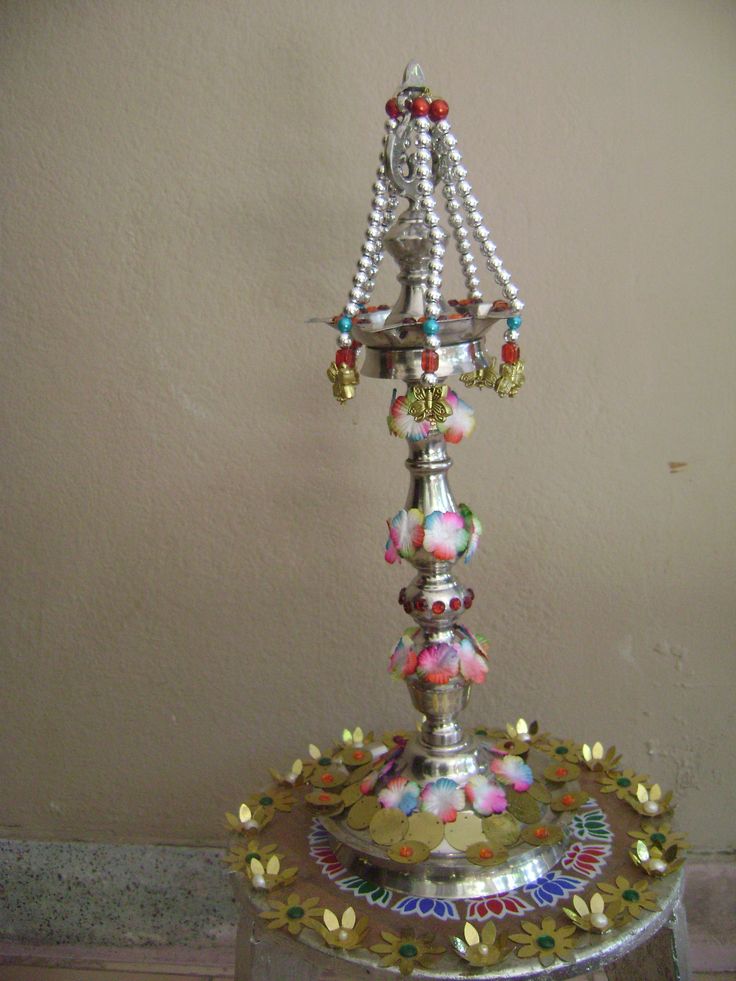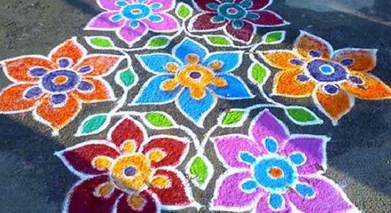 Puthandu rituals start with womenfolk getting up early in the morning and decorating their house entrances with colorful kollams. The kollam center is decorated with Kuthuvillaku, a lamp in the belief that it dispels darkness. Tamil Nadu customary is to visit temples and to seek divine blessings for the year ahead.