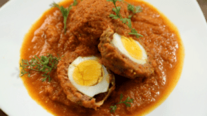 Koftas are prevalent in the vegetarian as well as in non-vegetarian fare. The Non-vegetarian fare is a combination of minced meatballs set in a spiced gravy of malai or cream. There are several vegetarian varieties of the koftas too like Malai koftas, Lauki Koftas, Shahi Aloo koftas, and more. The Nargisi Kofta is a tasty Mughlai dish prepared with boiled eggs that are coated with minced meat mixed with spices and deep-fried before letting them simmer in a thick, creamy gravy which is one of the best among Uttar Pradesh Cuisines. Koftas taste good with Basmati rice or varied Indian flatbreads.