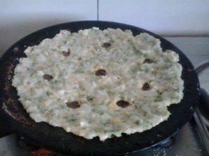 It is one of my favorite breakfast items. I can eat Akki rotti every single day! I love this because it is crispy, spicy and can contain any vegetable I like. Made from rice flour, grated coconut this takes the taste of the vegetable you add. The plain one without any vegetables and spices also tastes superb. Akki rotti should be eaten hot with chutney or masala brinjal sabzi.