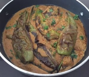 - Further, place the fried chilies to the Salan and mix gently so that the masala coats the chilies well and seeps in the slits and simmer for 5 minutes.